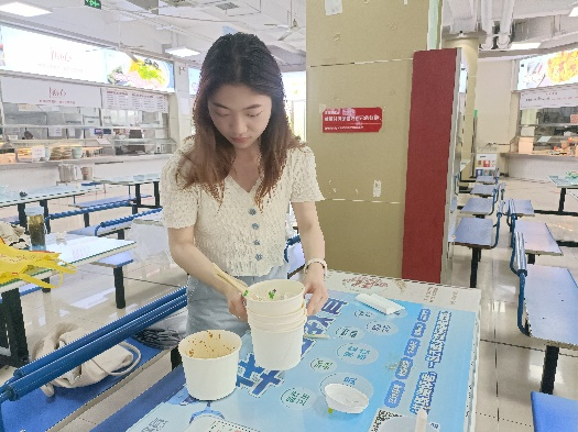 党的二十大报告着眼“培育时代新风貌”,指出在全社会弘扬勤俭节约精神。为此,支部志愿者们利用课余时间在校园餐厅内帮助员工收拾餐盘、打扫餐桌卫生、宣传节约意识、积极带领身边人践行“光盘行动”,以自身做表率,倡导并带动更多同学一起勤俭节约。