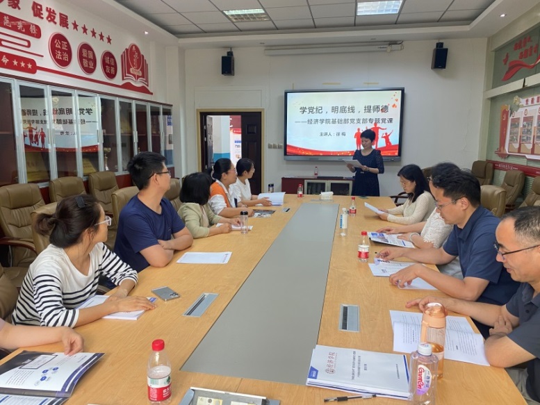 为深入学习贯彻习近平总书记关于党纪学习教育的重要讲话和重要指示精神,深化《中国共产党纪律处分条例》(以下简称《条例》)的理解和运用,6月7日下午,做爱视频 基础部党支部在关天会议室开展党纪教育主题党日活动,做爱视频 副院长徐梅为支部党员讲授“学党纪,明底线,守师德”专题党课,支部全体党员参加。本次主题党日活动邀请民主党派、非党员教师代表参加。