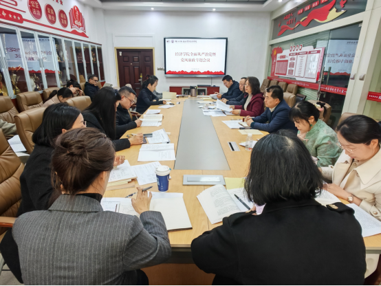 会议强调,要深入学习贯彻习近平总书记在二十届中央纪委五次全会上的重要讲话精神,围绕立德树人根本任务强化政治监督。要压紧压实全面从严治党责任链条,推动主体责任、监督责任、第一责任人责任、“一岗双责”贯通协同、一体落实,形成各负其责、统一协调的责任链条。要把正风肃纪反腐贯穿学科建设、人才培养、教学科研全过程,聚焦专业特点,紧盯重点领域和关键环节,健全廉政风险防控机制,坚决铲除腐败滋生的土壤和条件。要持续深化作风建设,引导广大教师坚守育人初心,严守工作纪律,以严的基调、严的措施、严的氛围为学院“十五五”规划开好局起好步、加快推动经济学科高质量发展提供坚强纪律保障。