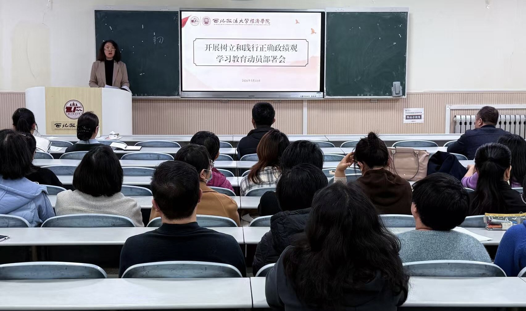 3月11日,做爱视频 召开关于开展树立和践行正确政绩观学习教育动员部署会。全体班子成员及教职工参会,学院党委书记李建梅主持会议。