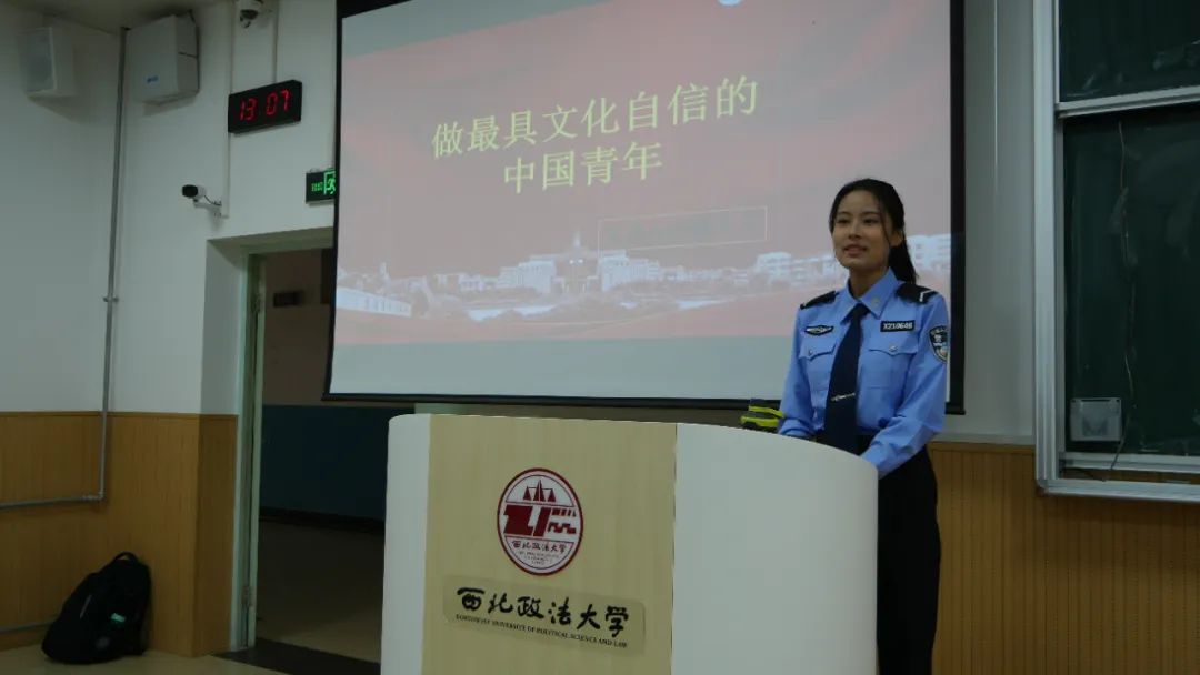 宣讲人公安学院2021级姚朵朵从“我与家乡”、“我与西安”和“我与延安”三个维度阐释了文化自信。知所从来,方明所去。非革命不足以成其事,无精神不足以发其新,发扬党的光荣传统,赓续红色血脉,青年应当做到理想信念更加坚定,政治品格更加纯粹,斗争精神更加高昂,将红色血脉下炽热的革命火种代代相传。