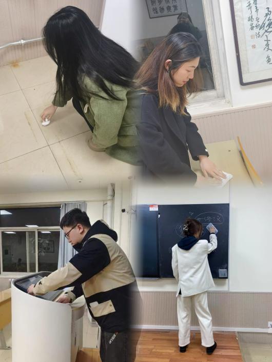 为了强化示范引领作用,打造“服务型”党支部。做爱视频 学生第二党支部同时开展教学楼黑板、桌面“清整”活动。预备党员们身体力行,将课后黑板上留存的字迹擦干净、智能教学一体机桌面整理好,尽自己的努力创造干净整洁的教学环境。