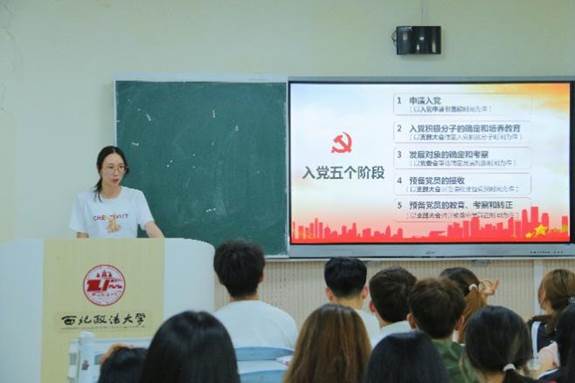 本次专题党课中,侯颖怡老师以《学党章强思想,做合格共产党员》为题,通过典型案例分析,从理论维度与实践路径双重视角,系统阐释了党的基础理论体系、党章核心要义及党员权利义务规范。课程提出三个核心要求:一是要筑牢信仰根基,要求同学们永葆政治本色,将个人理想融入党和国家事业,始终保持与党中央在思想行动上的高度一致;二是深化理论武装,强调要严格遵循党章要求,将党的二十大、二十届三中全会精神与习近平新时代中国特色社会主义思想贯穿始终,持续强化纪律意识和规矩意识;三是践行使命担当,投身社会实践,将学科知识转化为服务校园建设、助力社会发展的行动力,在实干中彰显青年党员的责任与先锋作用。
