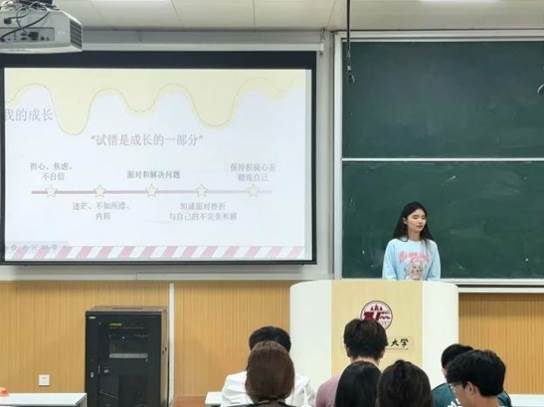 分享会上,2023级古丽比耶·安外尔从自身角度出发,分享校园生活适应经验,建议同学们建立正确认知自我,包容与悦纳有缺点的自己,勇敢尝试与他人沟通交流;同时她强调人际交往中尊重与主动的重要性,鼓励同学们积极交流与参与集体活动;她还分享了负面情绪管理方法,建议同学们以倾诉、运动等形式释放压力。同学认真聆听、积极提问,互动热烈。