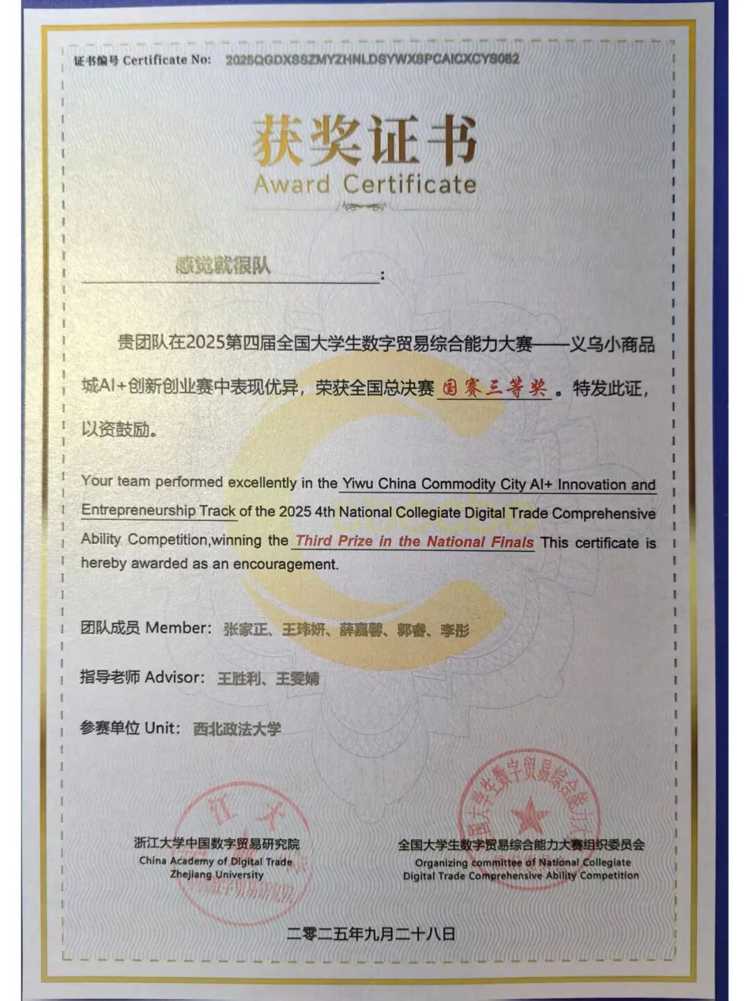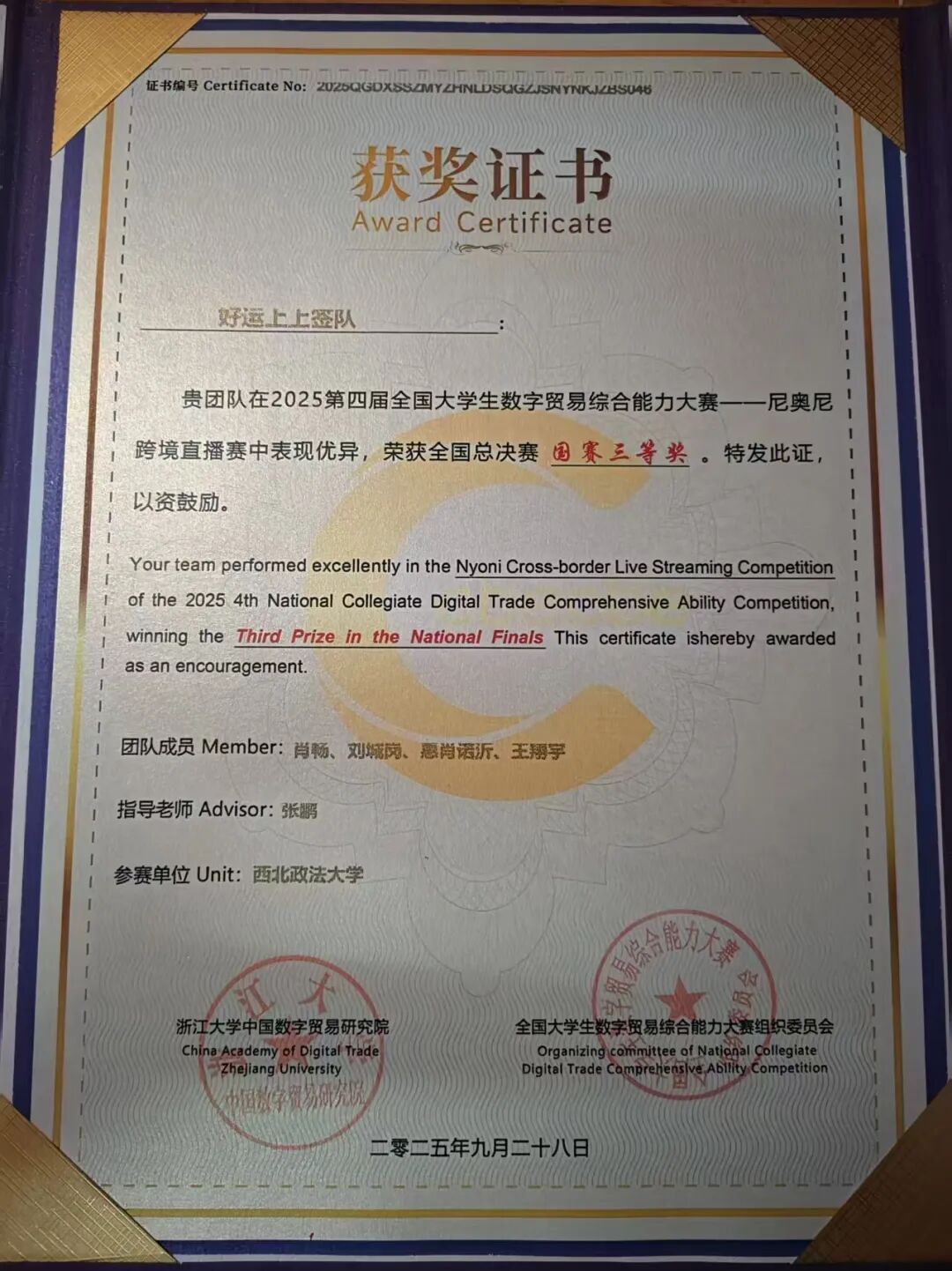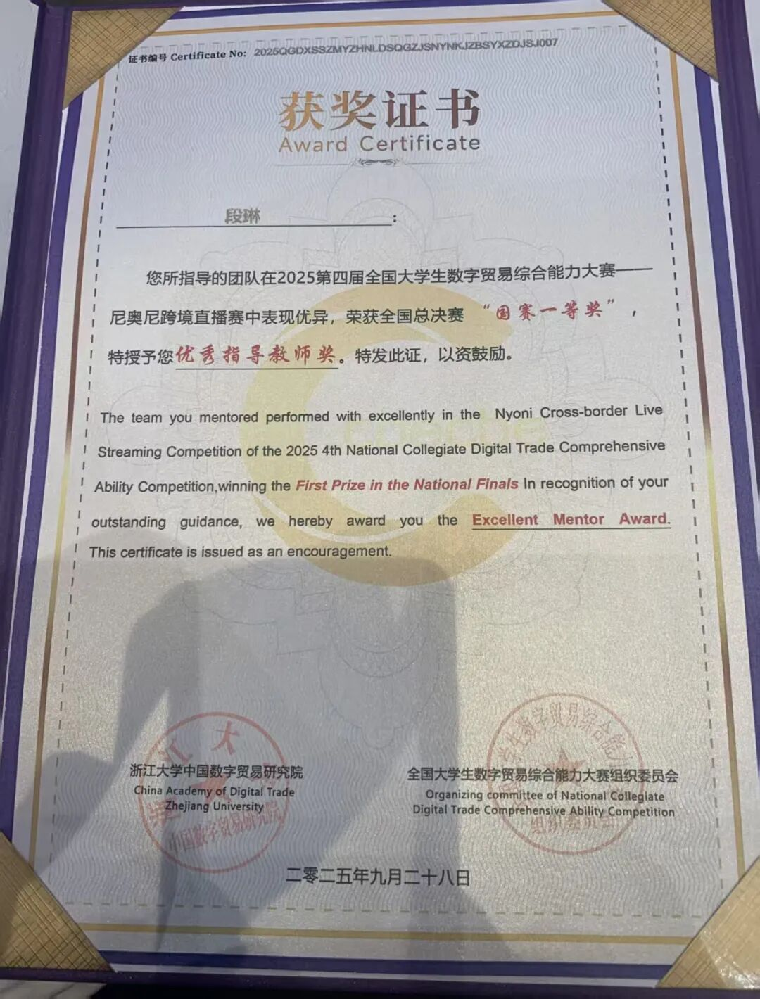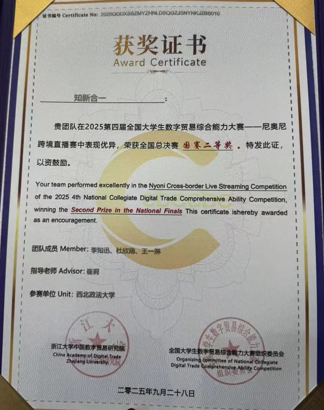 我校在2025年第四届全国大学生数字贸易综合技能大赛全国总决赛中荣获佳绩