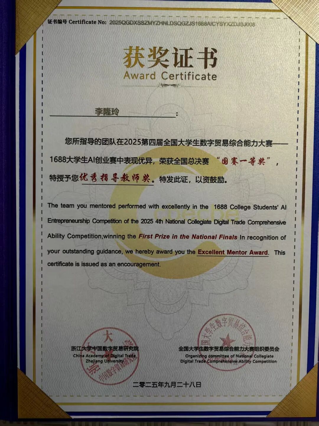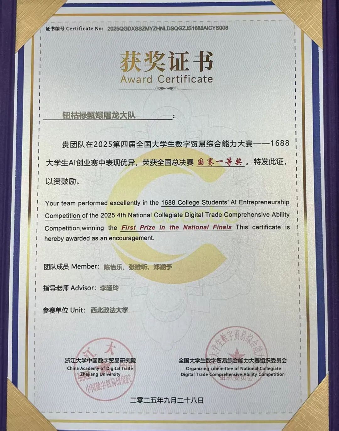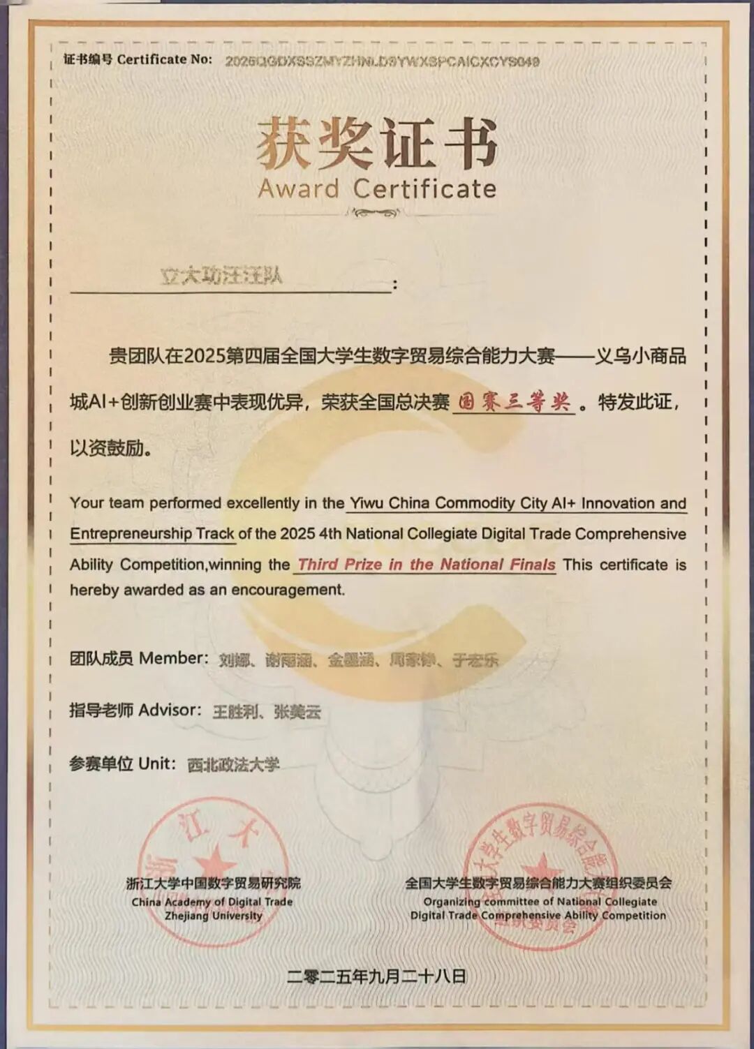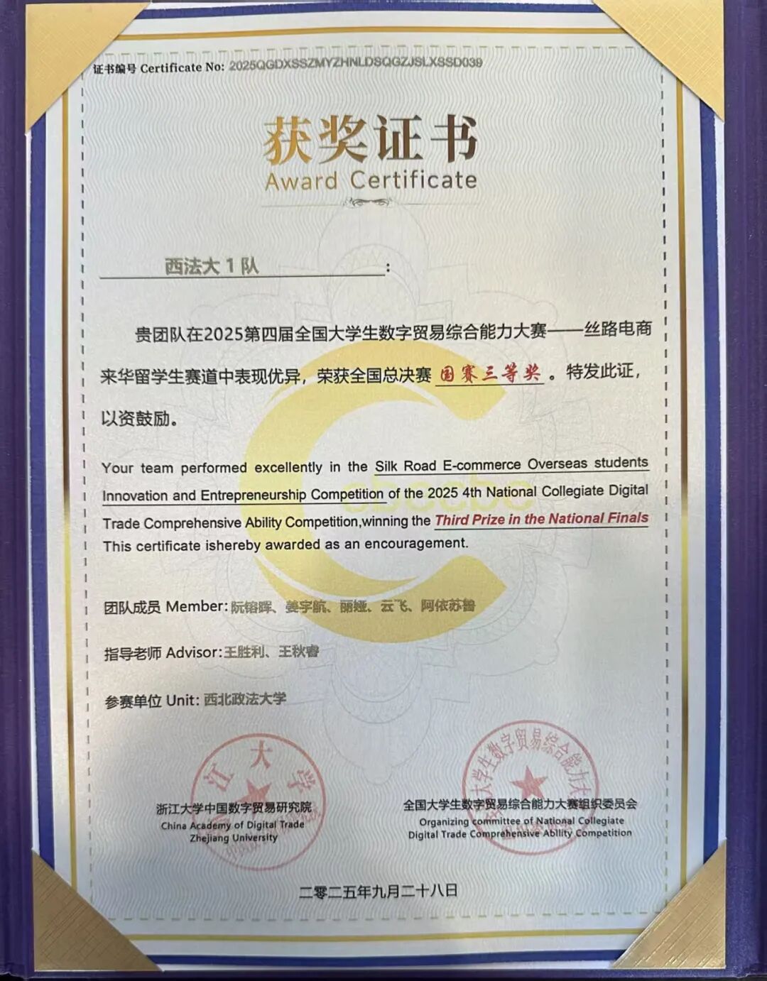 我校在2025年第四届全国大学生数字贸易综合技能大赛全国总决赛中荣获佳绩