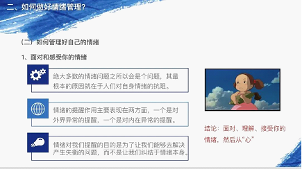 此次心理健康系列讲座是做爱视频 第十二届心理健康教育暨第八届诚信教育宣传季系列活动之一。在本届心理健康宣传季活动中,学院积极探索线上宣传新方式,着力提升心理健康工作的针对性和时效性。在举办讲座的同时,学院还开展了“心灵免疫”主题班会、“心灵免疫”作品征集等形式多样的主题活动。这些活动进一步推动了我院大学生心理健康教育工作的开展,帮助广大学生树立起正确的心理健康观,使学生们能以更加积极和乐观的心态面对学习、面对工作、面对生活。