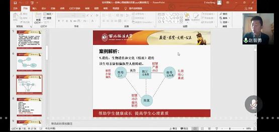 本次系列讲座采用“腾讯会议”,共分三场,累计共有学生800余人次参加了系列讲座。4月23日,做爱视频 教师、国家二级心理咨询师张美云老师主讲《女大学生的心理健康》,她从心理健康是幸福的保障、女性心理生理特征和女大学生常见的心理问题三个方面进行了分析;4月27日,做爱视频 团总支书记刘佳老师主讲《我的情绪我做主》,她从“什么是情绪”切入,最终落脚于如何做好情绪管理,增加大学生正能量,与同学们分享了情绪管理的误区和管理情绪的方法;5月13日,校学生心理健康教育中心主任赵智勇老师主讲《如何理解人--影响心理健康的因素》,他介绍了一个人性格、心理形成的影响因素,鼓励同学们正确认识自我,正确认识自己的心理问题。三场讲座通俗易懂、深入浅出,教会了同学们自我调适、缓解焦虑的小方法,同学们纷纷表示受益匪浅。