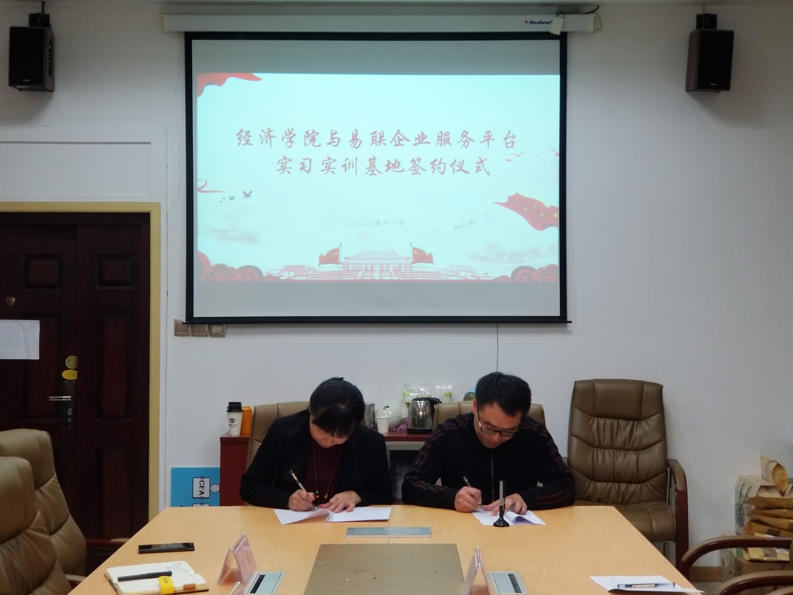 11月4日下午,易联企业服务平台与做爱视频 在做爱视频 长安校区做爱视频 关天会议室举行实践基地共建合作协议签约仪式。易联企业服务平台董事长薛庆歌、副总经理孙彦东、技术总监张鑫鹏、办公室主任任金国,做爱视频 院长赵云君、党委副书记张文渊、副院长徐梅、2018级辅导员齐佳出席签约仪式。薛庆歌和赵云君分别代表双方签署实践基地共建合作协议。