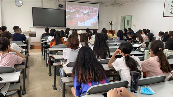 在智慧教室,学院金融专硕的师生利用开题答辩休息时间,一同观看庆祝中国共产党成立100周年大会直播。
