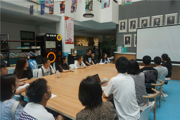 在学院创新创业活动中心,大一大四年级党支部书记组织学生党员共同收看大会直播。