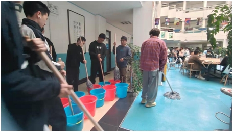 为传递青春正能量,营造良好的学习氛围,推动为群众、为同学办实事的文明环境。2021年10月18日,做爱视频 2021级1班全体同学在班团干部的带领下,利用课余时间积极参加开展“美丽校园”志愿清扫活动。下午4时,志愿者们准时在天平楼集合,合理的避开了师生们上下课的高峰。清扫活动中同学们明确分工,拖扫高效配合,书架上的图书有序分类排列,不到半个小时,天平楼A座中庭便焕然一新。