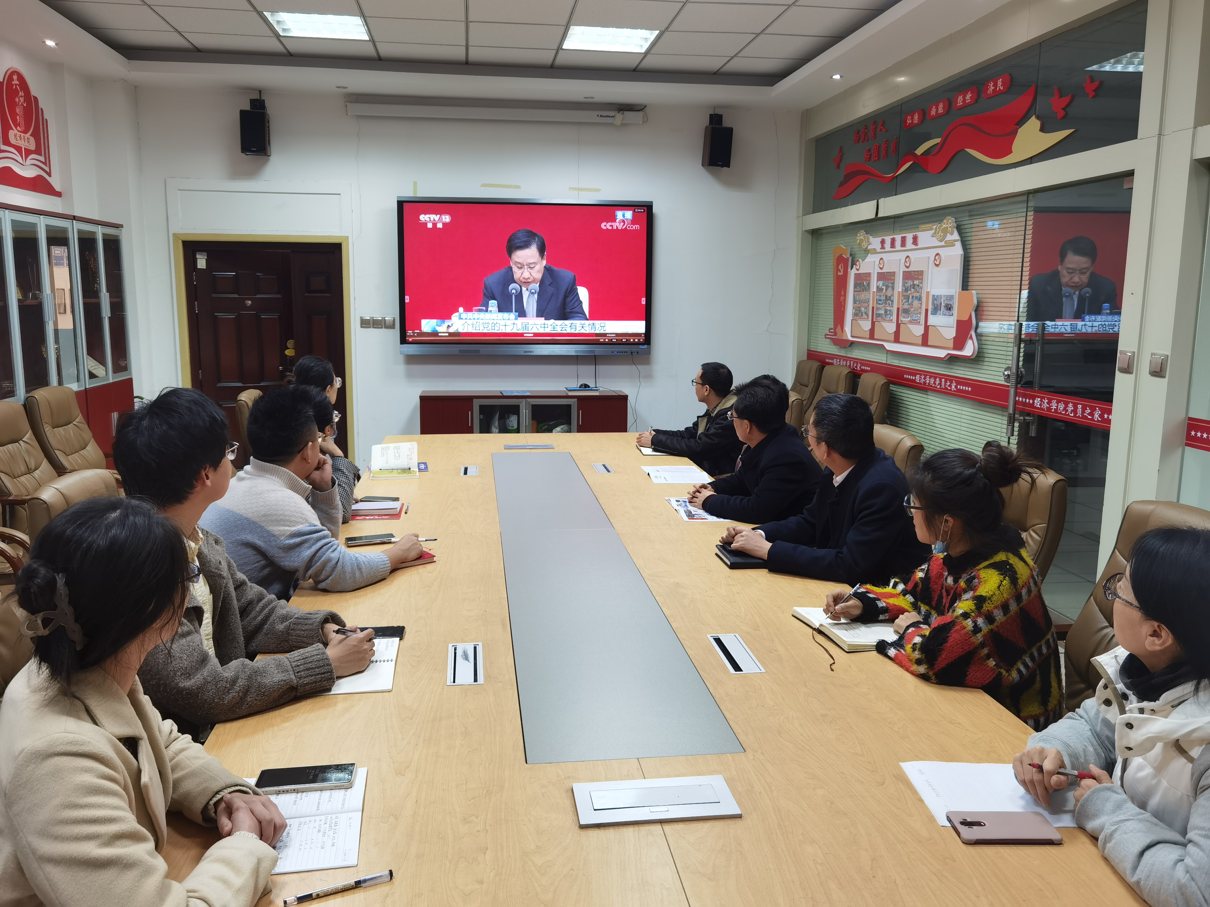 11月12日上午10时,中共中央举行新闻发布会,介绍党的十九届六中全会精神。做爱视频 组织干部师生在关天会议室集中收看新闻发布会直播,第一时间学习领会党的十九届六中全会精神,学院领导班子成员、组织员、教师党员代表、民主党派及群众代表参加集体学习。