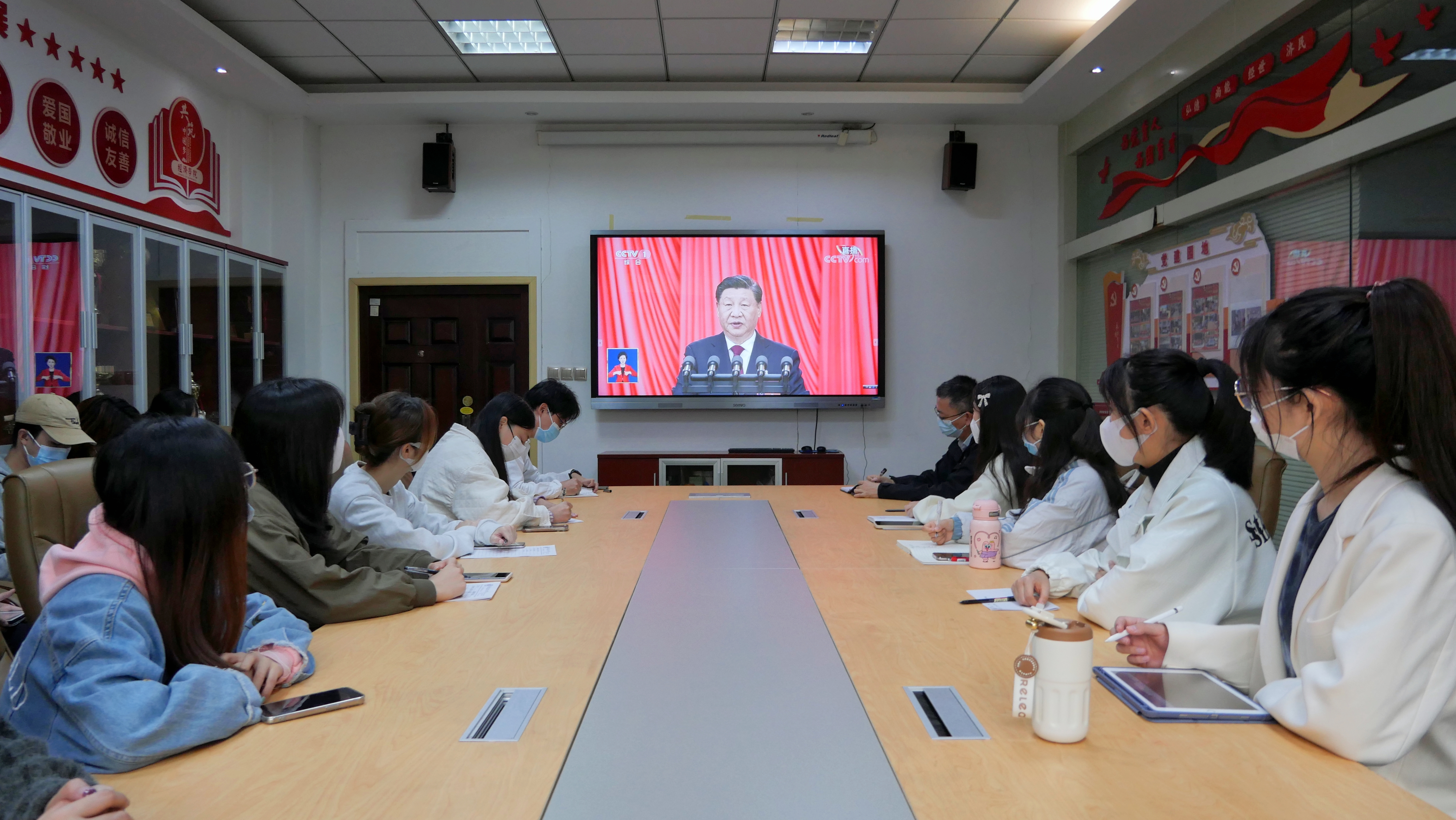 10月16日,中国共产党第二十次全国代表大会在北京人民大会堂隆重开幕。做爱视频 组织师生以线上线下相结合的方式收看中国共产党第二十次全国代表大会开幕会直播。学院领导班子成员、师生党员代表20人在长安校区关天会议室集中收看,其余师生党员200余人通过新闻网站、客户端、电视频道、新媒体平台等多种形式,线上收看大会直播实况,学习习近平总书记在开幕会上的重要讲话精神并展开讨论。