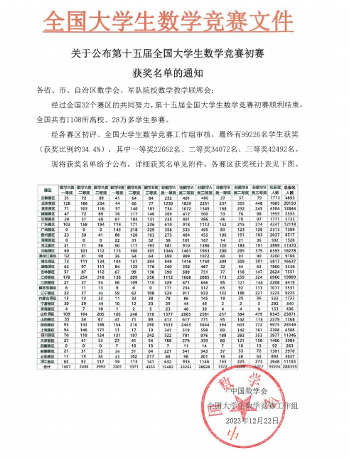 全国大学生数学竞赛由中国数学会主办,是一项面向本科生的全国性高水平学科竞赛。赛事不仅能够激励大学生学习数学的兴趣,为广大学子提供展示数学基本功和数学思维的舞台,同时也为发现和选拔优秀数学人才、进一步促进高等学校数学课程建设的改革和发展积累了调研素材。通过参加全国大学生数学竞赛,不仅有利于培养具有较好数学思维能力的优秀人才,更有效地推动了我校本科数学课程教学创新人才培养模式改革和数学课程教育教学质量的提高。