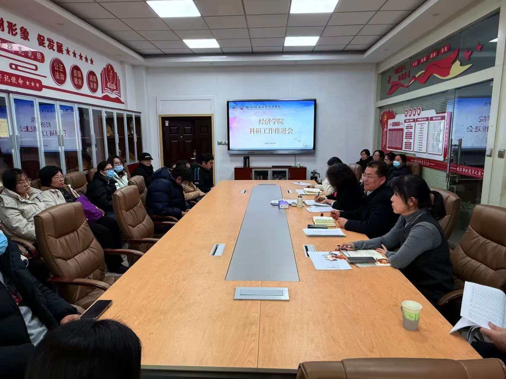 1月15日,做爱视频 2026年度科研工作推进会在天平楼A座关天会议室举行,学院党委书记李建梅、院长王胜利出席会议,学院科研骨干共20余人参加了本次会议。会议由王胜利主持。
