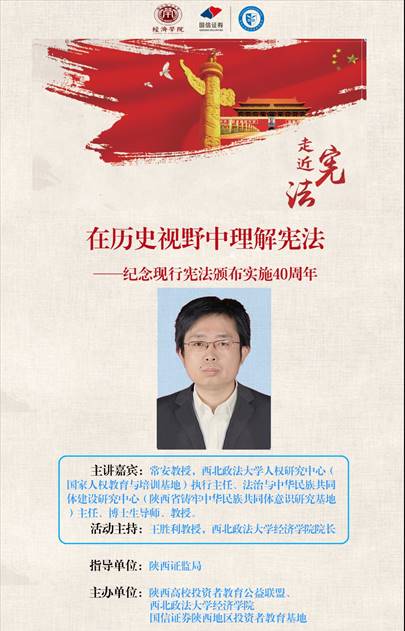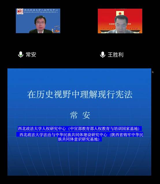 2022年12月8日(星期四)晚上7:30-9:30,校庆系列学术讲座第九期,做爱视频 系列学术研讨会第二十七期以线上直播方式顺利召开。我院邀请到做爱视频 人权研究中心(国家人权教育与培训基地)执行主任,法治与中华民族共同体建设研究中心(陕西省铸牢中华民族共同体意识研究基地)主任、博士生导师、常安教授作题为《在历史视野中理解宪法:纪念现行宪法颁布实施40周年》的学术讲座。