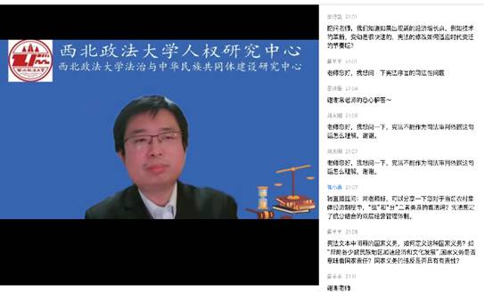 常教授在讲座结束前还和与会线上观众进行了充分互动。观众就频繁修改宪法与如何维护宪法权威,当前农村集体经济制度中“统”和“分”二者关系,宪法的修改如何适应时代变迁的节奏,宪法是否作为司法审判依据的理解,宪法序言的司法性等问题,与常安教授进行了广泛而深入的互动讨论。