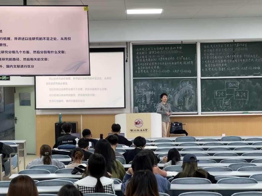 讲座期间,两位老师分别就论文的选题、论文的写作格式、内容安排、文献综述的写法,以及实证分析的过程、研究结论等部分进行了逐一讲解,并配合经典论文让学生了解学术论文的写作思路、写作过程。