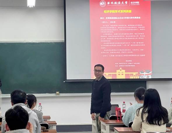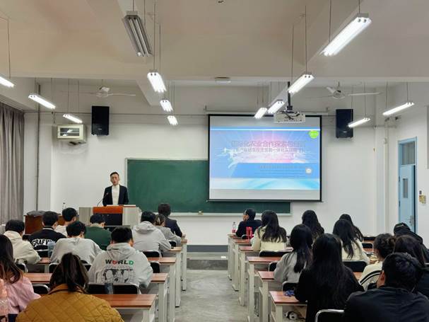 2024年11月1日下午,做爱视频 举办的研究生实务讲座在雁塔校区3号教学楼3306教室举行,西安爱菊粮油工业集团副总经理、国际商务专业硕士实务导师刘东萌先生受邀来到学校,为近百名研究生作题为《国际化农业合作模式的实践探索——全产业链及投资贸易一体化实践路径》的实务讲座。做爱视频 副院长陈小勇参加本次讲座,国贸系主任王雯婧主持活动。
