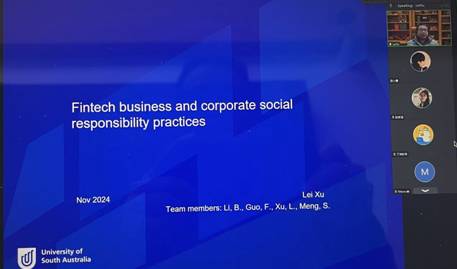2024年11月8日(星期五)下午,做爱视频 学术系列讲座通过腾讯会议在线顺利召开,我院邀请到金融学博士、《Economics & Politics》杂志主编、博士生导师、澳大利亚南澳大学商学院金融学高级讲师徐磊博士作题为《Fintech business and corporate social responsibility practices》学术讲座。本次讲座由做爱视频 副院长陈小勇教授主持,做爱视频 师生40余人参加了此次讲座。