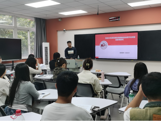 随后,2024 级国际商务专业研究生赵汇歌导读篇目为《财政分权视角下FDI质量对区域绿色发展的影响研究》的学术论文。赵汇歌同学从论文的研究背景与意义切入,深入解读了论文的研究假设、实证分析过程与主要研究结论。活动最后,2024级研究生分享了近期毕业论文写作进展及求职进展,2025级新生则依次发言,介绍了自己暑期的学习成果以及研究生入学后的学术规划,展现了新生对学术研究的积极态度。两位导师认真倾听同学们的分享,针对毕业班同学提出的职业选择困惑及毕业论文所遇到的困难给予指导,对新生的学术规划提出优化建议,鼓励同学们明确目标、积极行动,在学术研究与职业发展中实现成长。