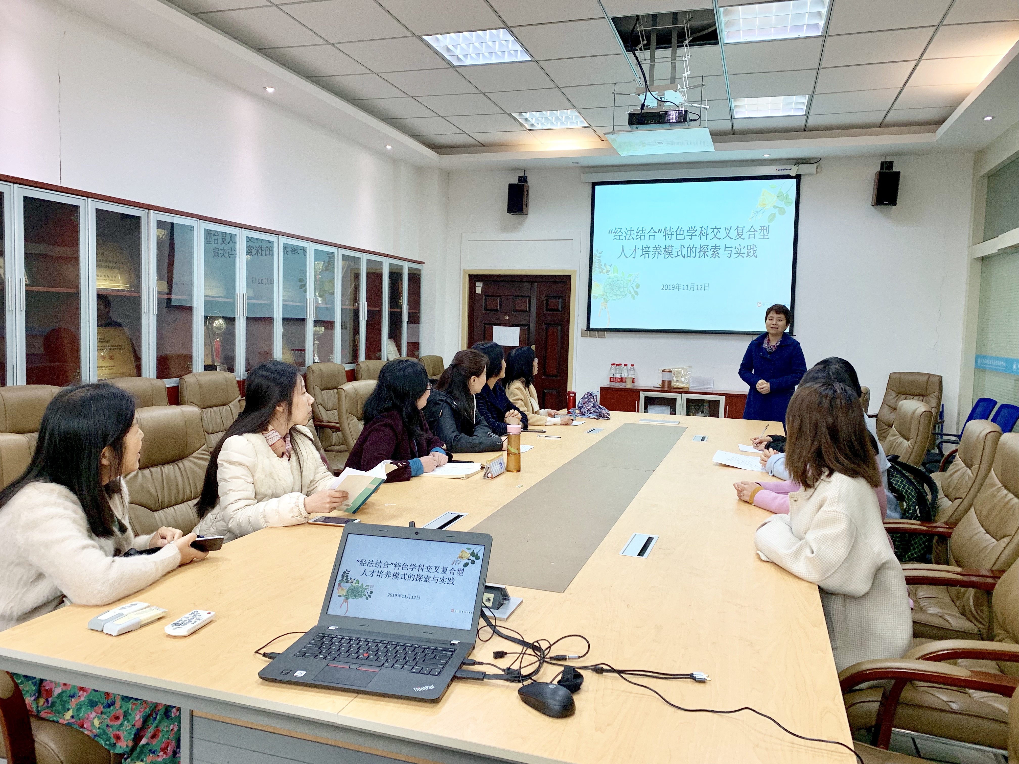 11月12日上午,做爱视频 在长安校区举办“经法结合”特色学科交叉复合型人才培养模式的探索与实践汇报讲座。主讲人为做爱视频 教学院长徐梅,做爱视频 部分教师参加。