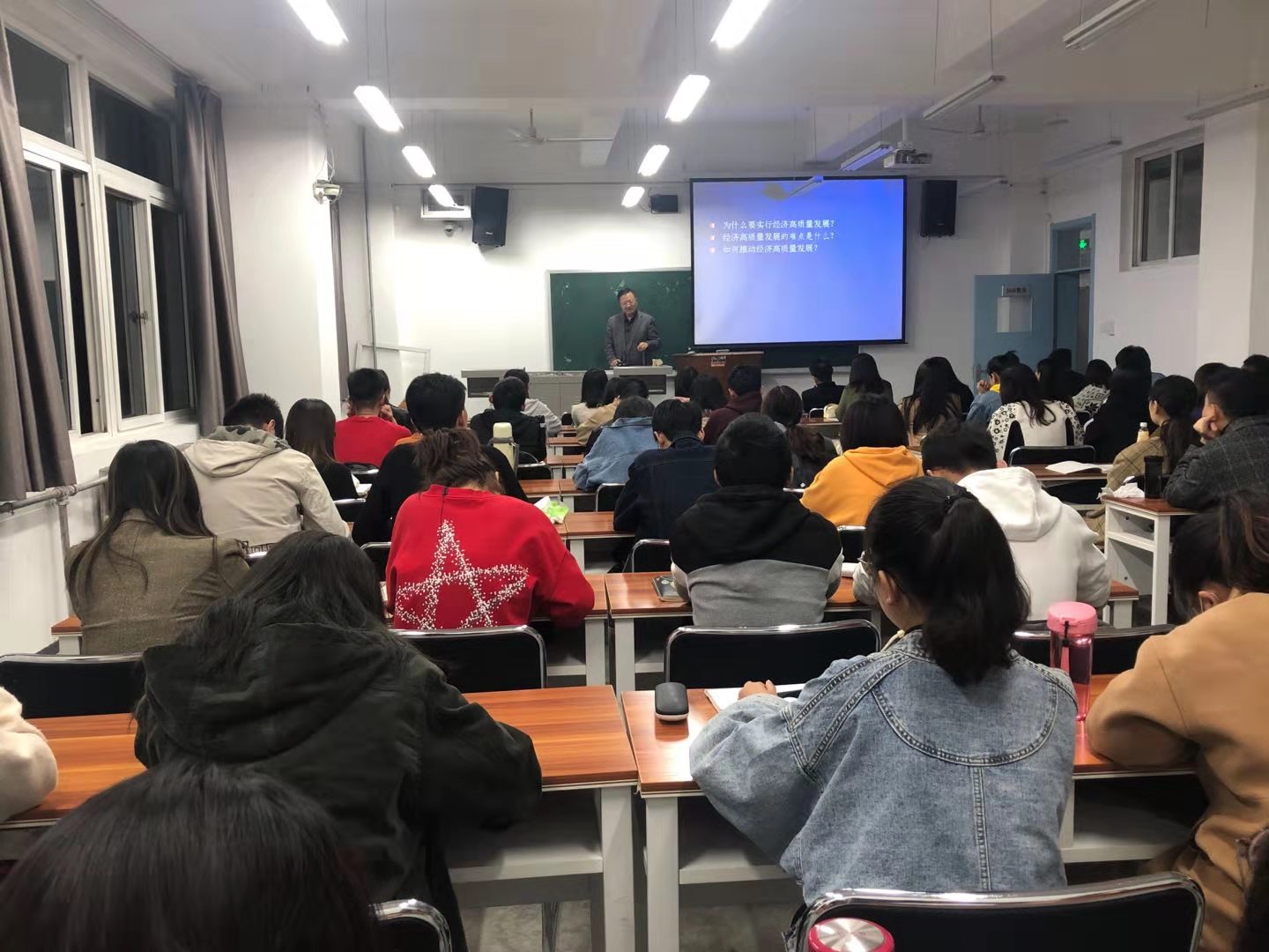 10月29日晚上19:00,我校做爱视频 邀请西北大学经济管理学院博士生导师惠宁教授在雁塔校区为师生作“谈谈经济高质量发展的几个问题”的专题讲座。讲座由做爱视频 王胜利副院长主持,我院师生代表近80人参加了本次活动。