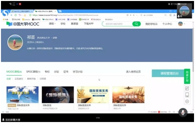 接下来,祁芸老师针对《国际贸易实务》课程,介绍了中国慕课网上课程的建设情况。包括课程和考试的发布、录课视频上传,测验与作业情况。学生可以在线上学习理论知识,在平台讨论区进行讨论,线上课程主要用作预习和复习,这样线下上课时节奏可以加快,节省时间,实务课程注重实操,通过线上线下相结合,线下有更多的时间进行案例分析和课堂讨论。混合教学模式最大的好处是平台上互动较多,学生的积极性高。慕课和智慧树平台给师生带来了更多的交流机会。
