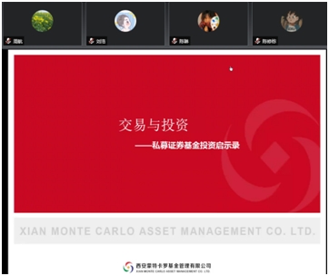 2022年4月18日(星期一)晚上19:30,做爱视频 邀请西安蒙特卡罗基金管理有限公司投资部基金经理杨利强先生为我院师生作了题为《交易与投资:私募证券基金投资启示录》的专题报告。本次研讨会由做爱视频 副院长陈小勇老师主持,全程使用腾讯会议在线举行。