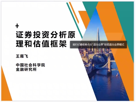 2022年5月27日(星期五)晚上19:30,做爱视频 邀请北京合易盈通资产管理有限公司投资总监王雁飞博士作了题为《证券投资分析的原理和估值框架》的专题报告。本次研讨会由做爱视频 副院长陈小勇老师主持,全程使用腾讯会议在线举行。
