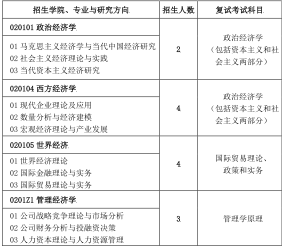 学术学位硕士研究生调剂专业:政治经济学专业、西方经济学专业、世界经济专业、管理经济学专业